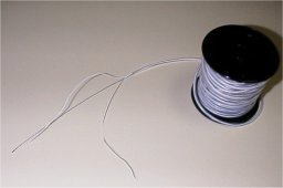 ヒーターはシリコンチューブの中に、ステンレスワイアーと被服銅線を通して作成します。 ここでは、感触を改善するために、外径2.8ミリ、内径1.5ミリと比較的細いシリコンチューブを使用している為、チューブにワイアーを通す方法に工夫が必要です。 最初に、細い糸(ミシン糸を使用)を水の流れに乗せて、パイプを通し、次にそれに結び付けて、ワイアーを通します。 | |