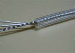 内径1.5ミリの細いチューブに、ワイアーと2本の被服銅線が通っています。 |
