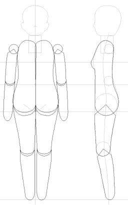 胴体のラインが自然になるように、体表面を円筒と球で近似して、立体的に裁断しています。 |