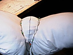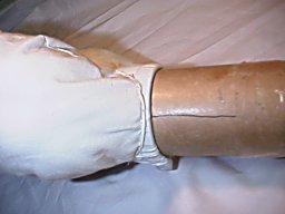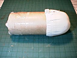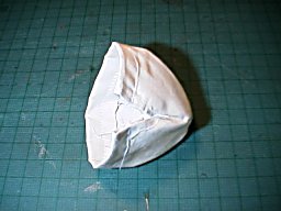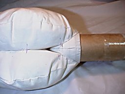 首と同じ太さの紙管等をインシュロックで上の帽子型部品に取り付け、内部に硬く綿を詰めます。 |