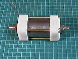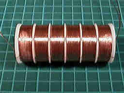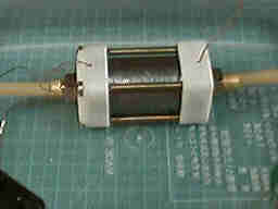 ボビンは6つのセクションに分かれています。第1相は左から、右右左左右右と巻線し、第2相は、その上から重ねて、左から、右左左右右左と巻線します。 このコイルに90度位相の異なる三角波電流を流すと、移動する磁界が生じ、内部のピストンを動かします。 ボビンの厚さは0.5ミリと薄く、また、ボビンの中には温水が流れていますから、コイルの熱は効果的に放熱されます。 |