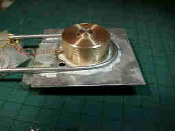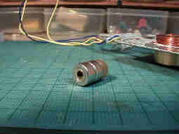 Φ12×6ミリの磁石を二つ重ねて利用しています。磁石は4ミリのシャフトに沿って前後するので、シャフトを受ける真鍮のブッシュが挿入されています。 |