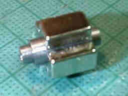 本当は4極に着磁した円筒形の磁石が良いのですが、12×7×4の磁石を4枚貼りつけて使っています。 中心のシャフトは中空で、内部には3ミリのネジを切ってあります。 |