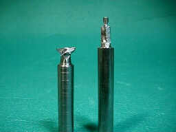 旋盤で球面に加工した丸棒をフライスで、トンボギリの形状に加工し、鑢で逃げを作ったものです。
