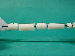 肩と肘は二重関節、手首は単関節を使用しています。 下腕は円錐、上腕は円筒で工作されており、いかにも前世紀のロボットを思わせます。 |