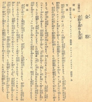 お、金粉を集める方法?これで大金持ち間違いなしか?と思いきや、ゴールデンバットや光(昔のタバコですな)の箱の金色部分から真鍮の粉を分離する方法です。しかし、これにとどまらず、その後、その粉を使った実験が続きます。 古い本だし、ダウンロードできても構わないでしょう。 この本には続編もあり、そっちの方が実験内容がエキサイティングです。近日公開予定です。 |