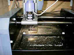 | スキャンしたデータをもとに、MDXで真鍮の板をけずります。 金属を削るときは、しっかりとした固定がポイントになります。まず、真鍮の板を2枚用意して、1枚には対角線の位置の角に2箇所のネジを切っておきます。もう一枚の真鍮板を最初の一枚に重ねてはんだ付けしします。これを、ワークプレートの裏からネジでしっかりと固定します。