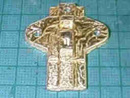 | 削りあがった真鍮板(2枚重ね)をバーナーで加熱すると、半田が外れて、このように、出来あがりです。
