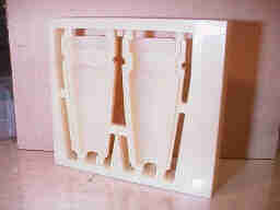 抱き人形の脛のパーツです。大型の中空円錐なので、2つ割で成形する必要があり、その嵌め合わせ用の段付け加工も必要なので、両面からの加工となります。 写真は裏面で、中空の加工と嵌合用の段加工を見ることができます。 |