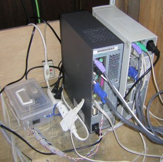 WEBサーバーPC(右側)です。 WEBサーバーは電源制御ユニットを制御して、ストレージサブシステム とUSBディスクアレイを起動/終了させます。 |