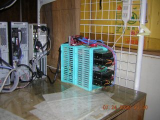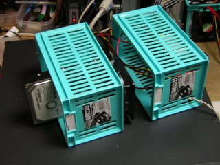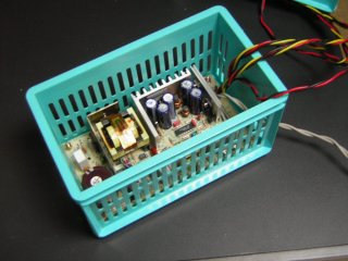 います。 電源はコンフィデンス2000と言うディスクアレイに搭載 されていた中古品(2出力:12V/5V)を使用しています。 | |