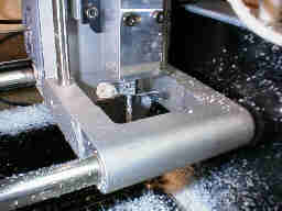 スピンドルにプロペラが付いています。 プロペラの作り方は、先ず、ブリキの板を十字に切り、中央に6ミリの穴をあけます。続いて、十字の左右の部分はネジって、プロペラにします。さらに、十字の上下の部分は、上に跳ね上げて、それぞれ3ミリの穴を空けて、刃物固定ネジにパチンと嵌めこみます。 |
