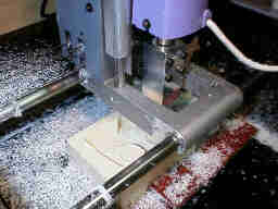 MDXは自動加工機なので、設計して材料をセットすれば、あとは、放っておけば加工してくれる筈です。 しかし、材料によっては、削り屑が溜まったり、刃物に巻きついたりして、トラブルが発生する場合があるので、時々点検して、掃除してやる必要があります。 これでは面倒なので、スピンドルの根っこにプロペラをつけて、削り屑を吹き飛ばす方法を工夫しました。 これなら、セットしたまま、ほんとうに、放置しておけば、加工してくれます。 |