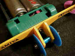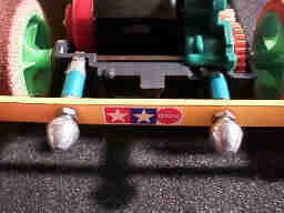 シャーシについているバンパーは切断して、前輪軸受箱部にリアバンパーを直にネジ止めしています。単純明快で強度も強い構造です。