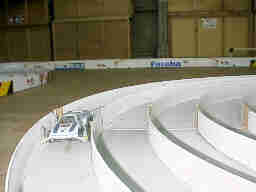 親父レーサーにはあこがれの、タミヤの5レーンを走る事が出来ました。その感想は、@コースが頑丈で、衝突のショックが凄い、A路面がやたらグリップする、B結構段差がある、の3点でした。