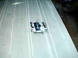 5レーンは重くて硬い、だから段差があると、マシンをぶっ飛ばしてしまします。怪しい所を見つけては、段ボールを敷いたり、テープを貼り付けて調整しました。 |
