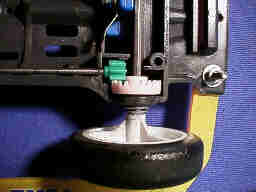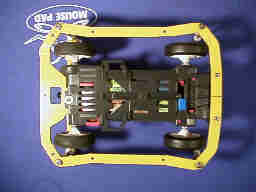 前後ローラーの間隔は狭く設定し、比較的小さなダウンスラストでも、車体が小さな曲率で、下転するよう工夫しています。(つまり、マシンを立てて走らせた時に、小さな曲率で下向きに曲がります)これによって、チェンジャーでのコースアウトを防いでいます。