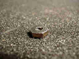 前ローラーにダウンスラストを与える(傾斜させる)為の、スラストナットです。ナットの片面を斜めに削って作っています。角度は6°です。
