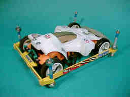 リングバンパーが車体を取り囲んでいます。 土屋博士が焼結に失敗した最初のZMCに因んで、白色のクリアカウルを乗せています。このカウルは、漫画では、走行中に風化してしまいました。 |