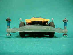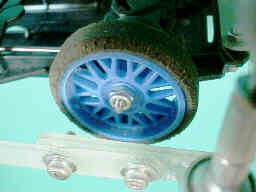 NRFの総統が発明された、「VSシャーシ用の小径タイヤを、大径ホイルに伸ばしてはめる」技を利用しています。これは、実に経済的です。 ホイルとタイヤは瞬間で接着し、28ミリまで削り込んでいます。 |
