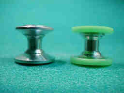 2段アルミローラーは、一枚で2枚分の効果がある魅力的なパーツです。しかし、@回転抵抗が大きい、Aアルミ製なので(特にスラストを付けると)フェンスとの摩擦抵抗が大きい、と言う欠点があるために、殆ど利用されていません。