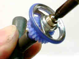 ビスに、4.9ミリのブッシュ、大径ローラー、標準ギア、ナット、の順で挿入します。