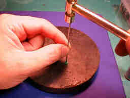 金床の上で、真っ直ぐ叩いて、両方のギアを圧入します。はみ出した固定剤は何時までも固まりませんから、拭き取ります。