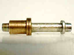ベアリングに接着する前のシャフトです。VS用の中間ギアシャフトに、真鍮スペーサーを挿入し、紙縒りで僅かな瞬間接着剤を流し込んで接着しています。 |