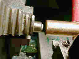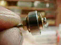 520ベアリングを押さえられる様に、ブッシュの出っ張りを削ります。臍部の出っ張りは0.5ミリ、直径は3.5ミリくらいです。