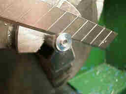 最初に、ブッシュには掴み代が無いので、軽いテーパーを付けた2ミリの軸(ヘソの部分)のヤトイを作ります。
