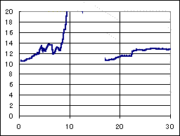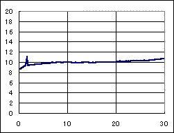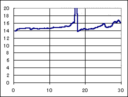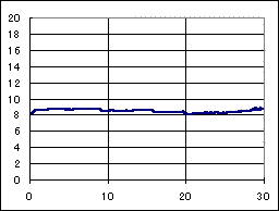 ポイント部門準優勝のマシン。FA130モーター、5:1ギアの組み合わせに、小径タイヤを装備して、1000ポイントを叩き出した。非常に低速の駆動系でありながら、それなりの速度が出ているのは、全てのローラーが水平にセッティングされていて抵抗が少ないからかも知れない。 終始、規準ラップタイムよりも、1秒程度遅い速度で走行した為に、ポイントでキラキンマグナムに及ばなかった。 Ni−Cd電池の最初のピークがゆっくりと減衰している事から解る様に、電池の消耗は極端に少ない。スピードが出ないので、焦って、何度も電池交換しているが、もう少し速い目のセッティングにすれば、30分をノーピットで走れるポテンシャルを秘めたマシンと思われる。 |