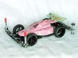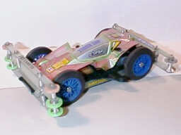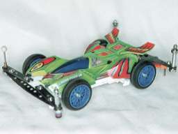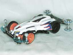 アトミックモーター、超速ギア、小径タイヤ、の組み合わせで、ポイント部門4位となった「ビオス」のマシン。スピードがありすぎて、ポイントがあと一歩伸びなかった。 タイヤが小径であった為、スピード部門では大々径タイヤを装備したマシンに及ばず、11位となってしまった。 電池交換ののちマシントラブルが発生し、長時間のピット作業が発生した事が悔やまれる。 | |
