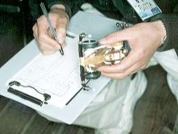 走行後直ちに結果を印刷。ラップタイムの推移もグラフで印刷している。 |