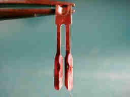 −極は5Vで5分間の裏焼きをしたにもかかわらず、新品同様です。もっと、長時間の裏焼きが必要な事がわかります。+極はかなり摩耗していますが、まだ大分持ち堪えそうです。 |
