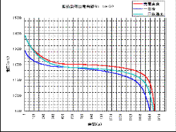 充電したNi−Cd電池を抵抗で放電させ、電圧の変化を測定しました。