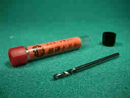 ドリルも、FRPに穴を開けると、気持ちよく開くのは最初の一つだけです。 超硬合金のドリルなら、50個くらいはスイスイ開けれます。また、開いた穴も奇麗です。 写真は、スイスのデキシー社の商品で、1000円くらいで、大型工具店で売られています。通常のドリルでも良いものは300円くらいしますから、却ってお買い得ですが、折れ易いので注意が必要です。 |