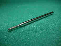 FRPに、別のFRPを差し込んで固定する為の「ホゾ穴」を開ける場合があります。エンドミルや、カッターでは太すぎるので、この場合は、写真のダイアモンドバーを使用します。 切削工具ではなく、研削工具なので、送りはゆっくりと0.2ミリ/秒くらいで行います。 写真はダイアクラフト社の1.5ミリのストレートタイプのもので、工具店で600円くらいで売られています。 |