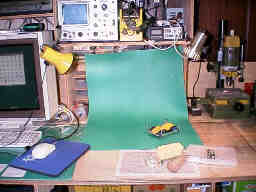 写真を撮る時は、緑色の机シートを机の上にL字型に敷いて背景にしています。 照明は、作業用の左右の2燈の白熱電球(30W)です。 カメラは、19000円のたたき売りで購入したリコーのDC−3で接写が出来て便利です。 最近はやりのメガピクセルのカメラは、HP用途には必要ありません。安物を買いましょう。 |