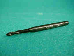 ミニ四駆には2ミリのネジが多用されるので、タップ立ての機会も多くなります。 写真は、ステンレスにも比較的楽にネジが切れるハイス製のスパイラルタップで、800円程度で入手出来ます。SKSのストレートなら200円くらいからあります。 |