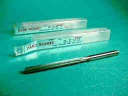 タミヤのプラリングローラーは、ベアリングのハメアイがキツクて、良く回りません。この様な場合に、一度ベアリングを抜き取って、リーマーで丁度5ミリまで穴を広げて、ネジロックを薄く塗ってベアリングを最挿入します。とても良く回る様になります。 その他、ドリルで空けた穴を精度良く仕上げる場合に用います。写真はナチの製品で4ミリと5ミリ、何れも1500円程度で入手出来ます。 |