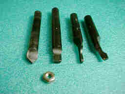 ミニ四駆の部品を細工するとなると、通常のバイトでは、大きすぎて、話になりません。そこで、4ミリの鋼棒から便利なミニ差込バイトを作りました。 |