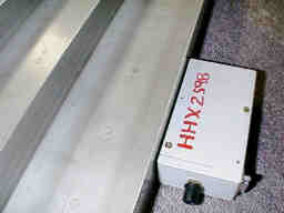 ストレートのコースの横に、回路ボックスを取り付けています。 時計を内蔵しており、マシンが通過した時に絶対時間を32ビット精度で送信します。時計は1/2400秒でカウントされます。 送信バッファを設けているので、3コース同時に通過した場合でも、正しい時間が得られます。 省電力設計で、24時間の連続使用が可能です。 |