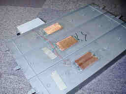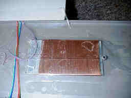 電磁検出方式を採用し、コースには、突起や穴が一切ありません。走行に影響を与えませんし、ランプは不要な上、周辺光量の変化による誤動作はありません。 ボックスの内部には、アンプ、CPU(PIC16F84)、電池、を内蔵しており、右端に見える9PinのDSUBでPCのシリアルポートに接続します。 電源のON/OFFはマシンの衝突等で誤動作しないよう、S付きVRの接点を使用しています。 |