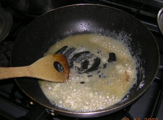 | 残った脂の中に小麦粉を入れて、中火で加熱する。 |