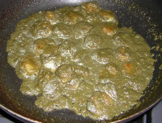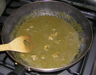 | とろみがついて、チキンの旨みをたっぷり含んだほうれん草 カレーソースが完成。 |
