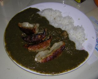 火曜日朝:残った餃子のホウレンソウカレー | |
