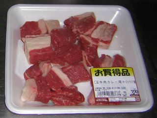 牛肉が安売りでした。本場インドではご禁制のビーフカレーを