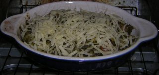 | グラタン皿に入れて、チーズを振りかけて、 |