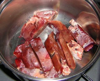 | 半解凍して、ザクザクと切って鍋へGO! |