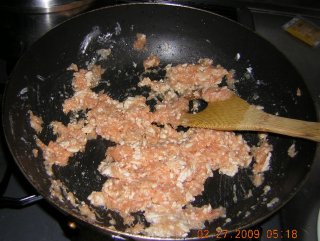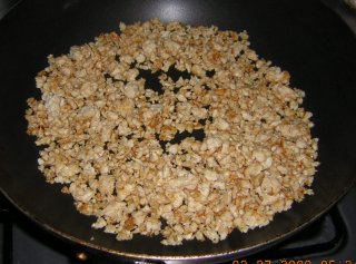 | 冷凍のチキンのミンチを少し炒めます。 |